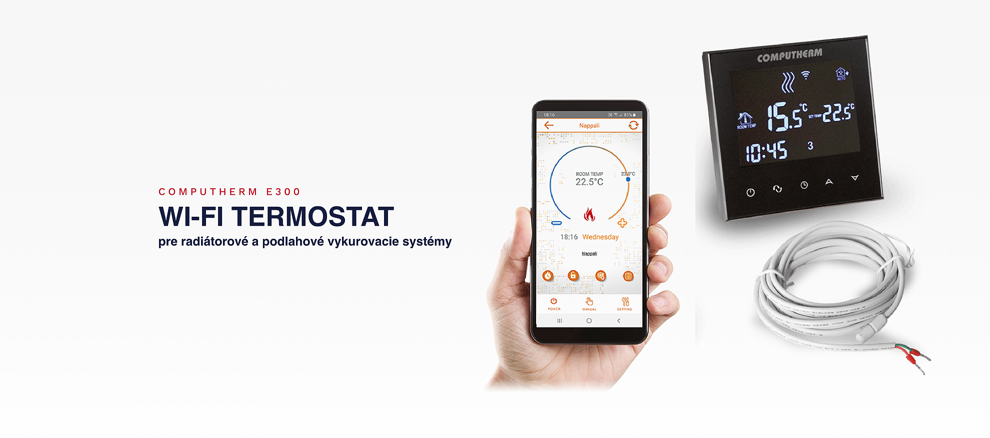 Pomocou Wi-Fi termostatov COMPUTHERM môžete ovládať a monitorovať prevádzku spotrebiča (napr. plynového kotla) pripojeného k termostatu cez internet pomocou mobilného telefónu, tabletu alebo počítača. Wi-Fi termostat je vynikajúcou voľbou pre každého, pretože jeho prijateľná cena a pokročilé funkcie pomáhajú znižovať náklady na energiu a zároveň poskytujú pohodlie. Umožňuje vám kedykoľvek a odkiaľkoľvek ovládať vykurovanie vášho bytu, domu alebo chaty.