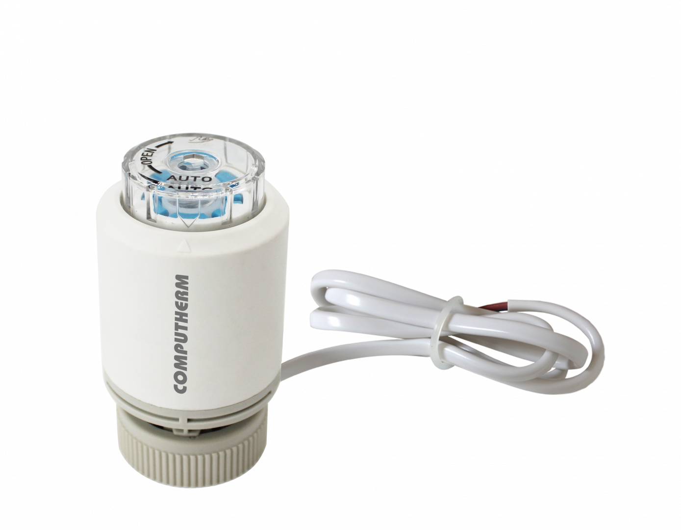 COMPUTHERM® DF-330 je dvojpolohový elektrotermický ovládač ventilov. Po namontovaní na ventil radiátora alebo rozdeľovač vykurovania pomocou pripojovacieho šrúbenia (holender), zabezpečuje jeho otváranie/zatváranie. Otvorený resp. zatvorený stav ventilu je indikovaný polohou axiálneho pohybu modrého indikátora stavu na čelnej časti ovládača. Keď je ventil zatvorený, tento indikátor stavu je zapustený do krytu ovládača, a keď je ventil otvorený, vyčnieva niekoľko milimetrov z čelnej dosky ovládača. Jednoduchá elektrotermická konštrukcia zaručuje spoľahlivú prevádzku s nízkou spotrebou energie.