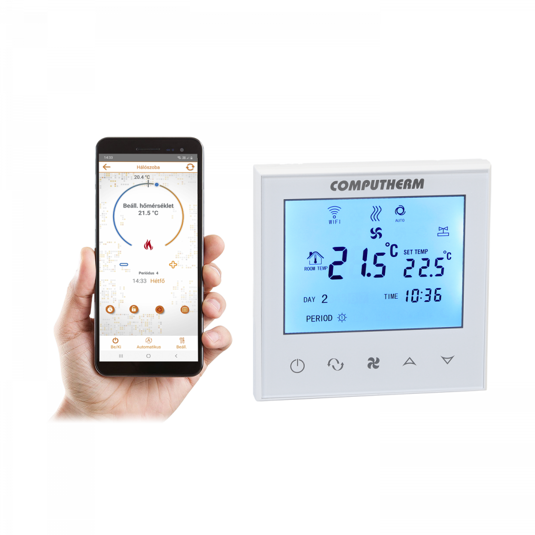 COMPUTHERM E280FC Wi-Fi termostat je špeciálne navrhnutý pre ovládanie fan-coil systémov na vykurovanie, chladenie a ventiláciu. Termostat prepojí váš smartfón, notebook alebo počítač so zariadením, ktoré chcete ovládať na diaľku. Pomocou E280FC môžete nastaviť teplotu vo svojej domácnosti hodinu po hodine a máte možnosť nastaviť a ovládať ju cez internet.