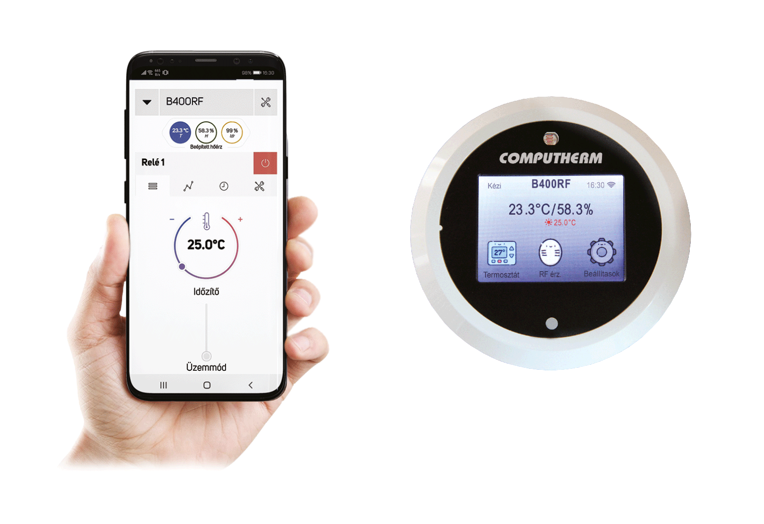 Wi-Fi termostat COMPUTHERM B400RF je bezdrôtové spínacie zariadenie, ktoré možno ovládať prostredníctvom internetu aj zo smartfónu, tabletu a počítača, odporúčame ho v prvom rade na ovládanie systémov ústredného kúrenia a elektrických spotrebičov. Jednoducho ho možno pripojiť k akémukoľvek plynovému kotlu, klimatizácii alebo inému elektrickému spotrebiču, vybavenému prípojným bodom pre dvojvodičový izbový termostat, nezávisle od toho, či disponuje riadiacim obvodom 24 V alebo 230 V.