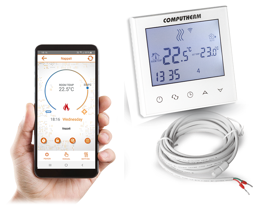 Termostat je zvlášť vhodný na ovládanie systémov podlahového vykurovania vďaka spojeného snímača teploty podlahy. Výrobok má dva bezpotenciálové reléové kontakty, ktoré spínajú súčasne, takže je možné ovládať dva úplne nezávislé výrobky. Dve paralelné relé, ktoré sú zabudované do zariadenia, poskytujú jednoduché riešenie k tomu, aby napr. pri spustení kotla termostat aktivoval/deaktivoval čerpadlo alebo zónový ventil. Preto pomocou viacerých Wi-Fi termostatov typu COMPUTHERM E280 je jednoduché rozdeliť vykurovací systém na zóny bez samostatného zónového ovládača.