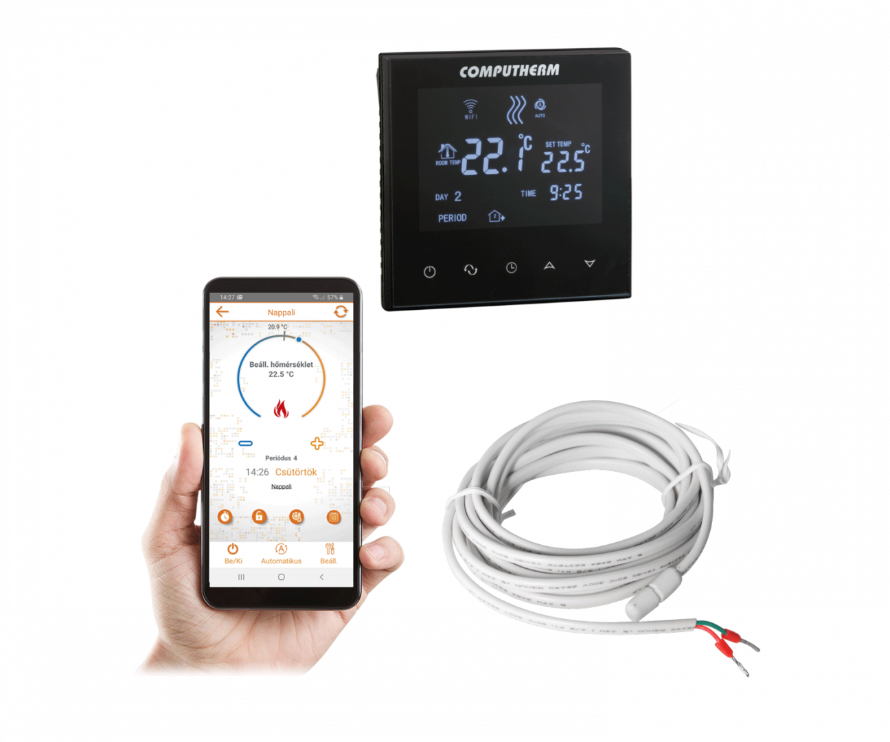 S Wi-Fi termostatom typu COMPUTHERM E300 môžete ovládať a monitorovať prevádzku zariadenia (napr. plynového kotla) pripojeného k termostatu prostredníctvom internetu pomocou mobilného telefónu, tabletu alebo počítača. Jednoducho ho možno pripojiť k akémukoľvek plynovému kotlu, klimatizácii alebo inému elektrickému spotrebiču, vybavenému prípojným bodom pre dvojvodičový izbový termostat, nezávisle od toho, či disponuje riadiacim obvodom 24 V alebo 230 V.